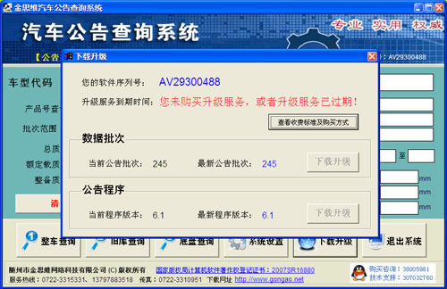 專業(yè),實(shí)用,權(quán)威!金思維《汽車公告查詢系統(tǒng)》是由隨州市金思維網(wǎng)絡(luò)科技有限公司于2005年10月獨(dú)立開發(fā)完成的(軟件著作權(quán)登記證書編號(hào):2007SR16880),用于查詢?nèi)珖鞯剀囕v生產(chǎn)企業(yè)及車輛技術(shù)參數(shù)。近幾年,根據(jù)用戶的意見和建議,我們不斷對(duì)軟件進(jìn)行改進(jìn)和升級(jí),使其功能更加完善、查詢更加方便: